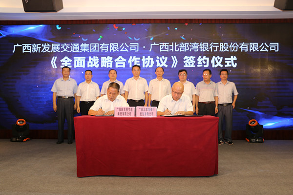 圖一:集團公司黨委副書記張友坐與廣西北部灣銀行副行長陳捷