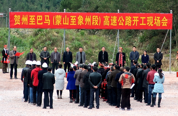 12月22日,集團公司賀州至巴馬高速公路(蒙山至象州段)(簡稱“蒙象高速”)在金秀縣召開開工現(xiàn)場會,標(biāo)志著該項目正式開工建設(shè)。來賓市人民政府副市長韋平主持會議。