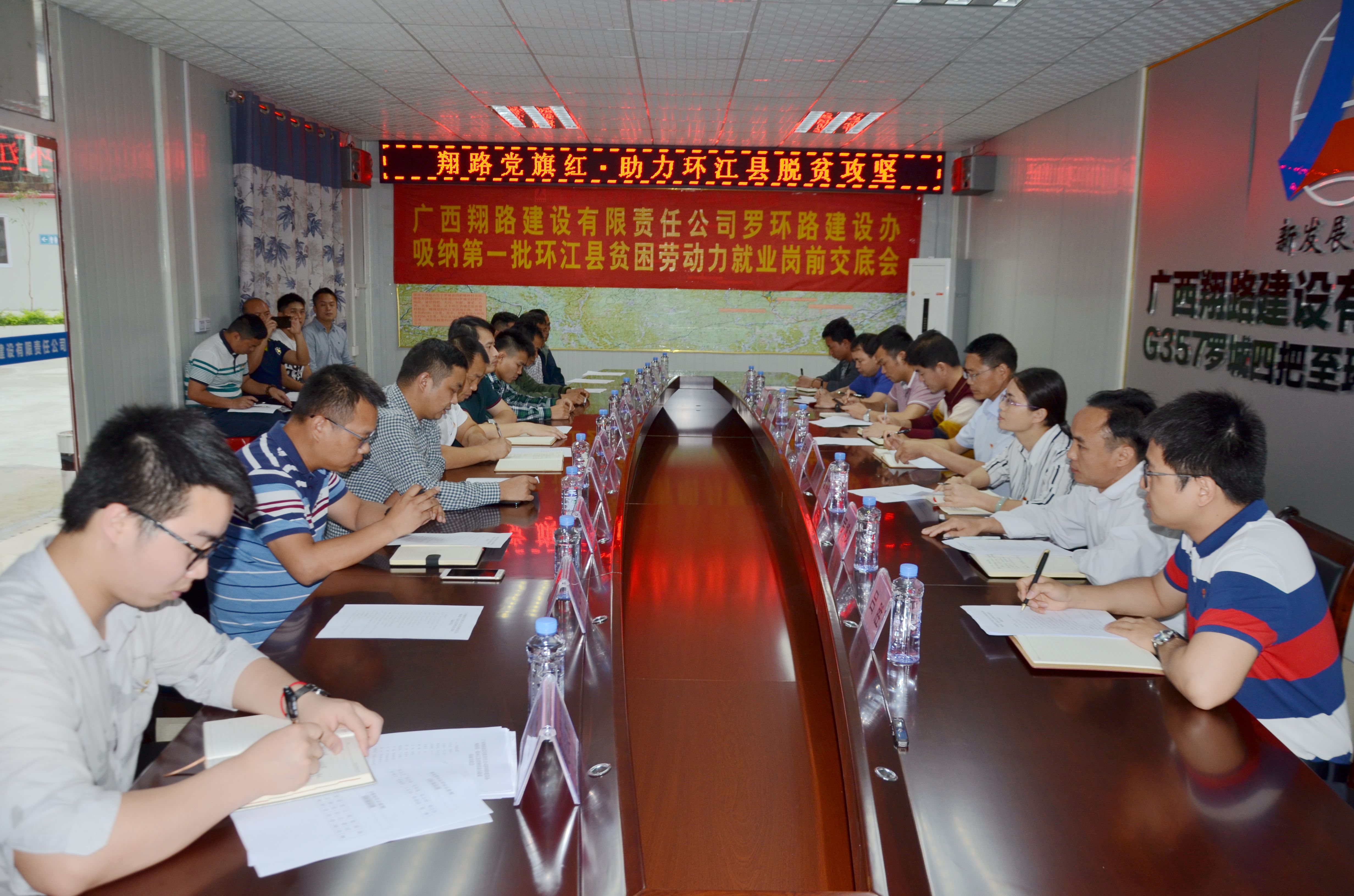 5月9日,廣西新發(fā)展交通集團翔路公司在羅環(huán)路召開吸納環(huán)江縣貧困勞動力就業(yè)崗前交底會,第一批5名貧困勞動力正式上崗,安排到該公司路網項目就業(yè)。經過前期大量充分細致的調研準備工作后,廣西新發(fā)展集團路網項目“黨建+就業(yè)扶貧”工作取得了階段性成果,惠及環(huán)江貧困勞動力。